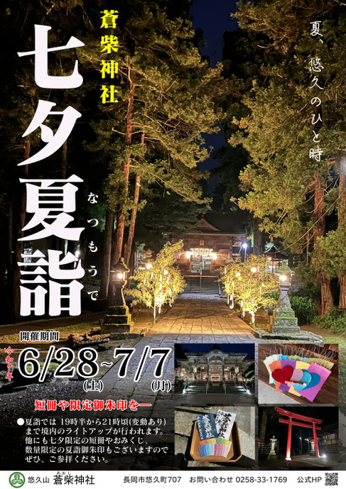 令和7年6月28日(土)~7月7日(月)の期間、七夕夏詣を開催いたします。ぜひご参拝ください。